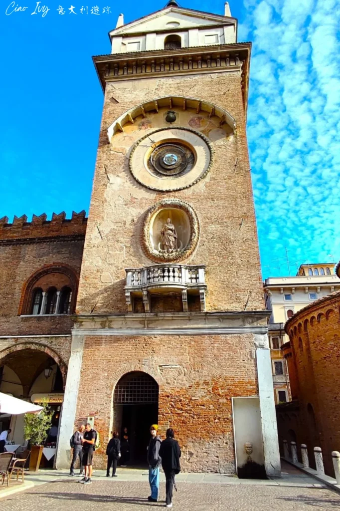 如果你對鐘錶機械有濃厚興趣,推薦你前來參觀,鐘樓內展出當年參與天文鐘製作的人員留下的或隨著時間推移而更換的物品和機械裝置:指針、浮雕銅十二星座圖案、傅科擺,以及兩座19世紀的木質和雕花金屬計時裝置。這兩座結構在八角形窗戶後方旋轉,使得人們即使在夜間也能讀取時鐘的時間。就算我對鐘錶一竅不通,能從塔頂俯瞰曼圖亞市中心的全景,一舉兩得。