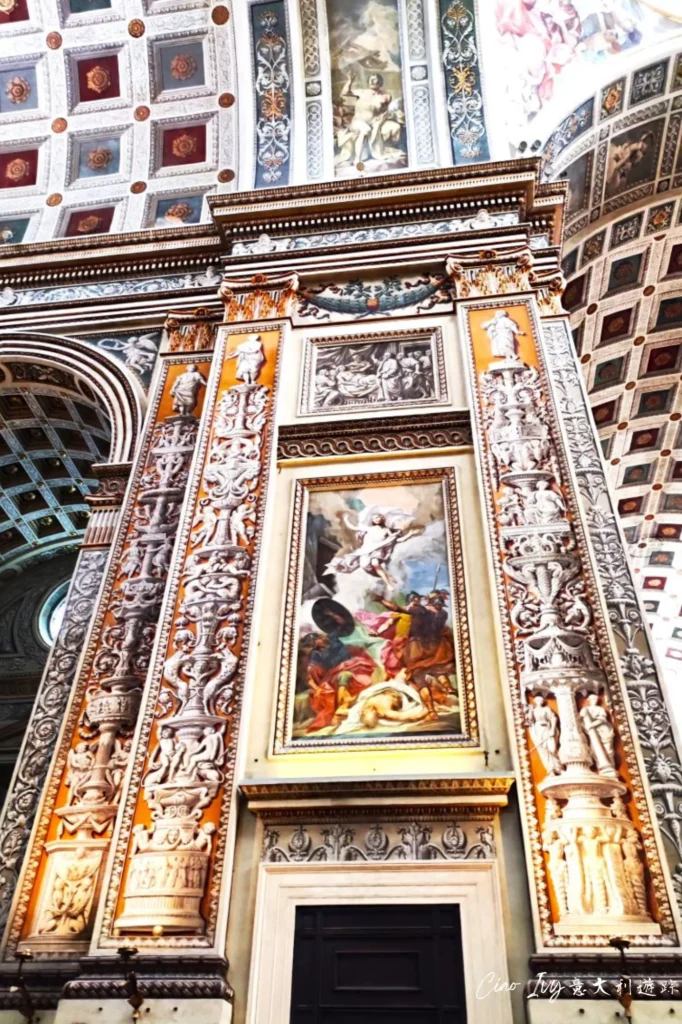 無論柱子、天花板、圓型拱頂雕刻装飾相當細緻華麗,個人覺得教堂內部装潢比外面更勝一籌,非常值得入內參觀。聖安德烈大教堂成為承先啓後的典範,建築師多納托·伯拉孟特Donato Bramante 的建築風格亦深受影響。