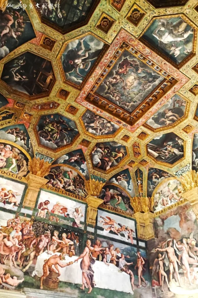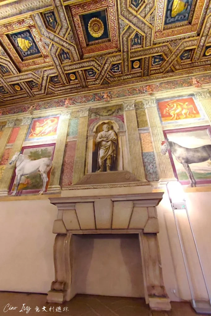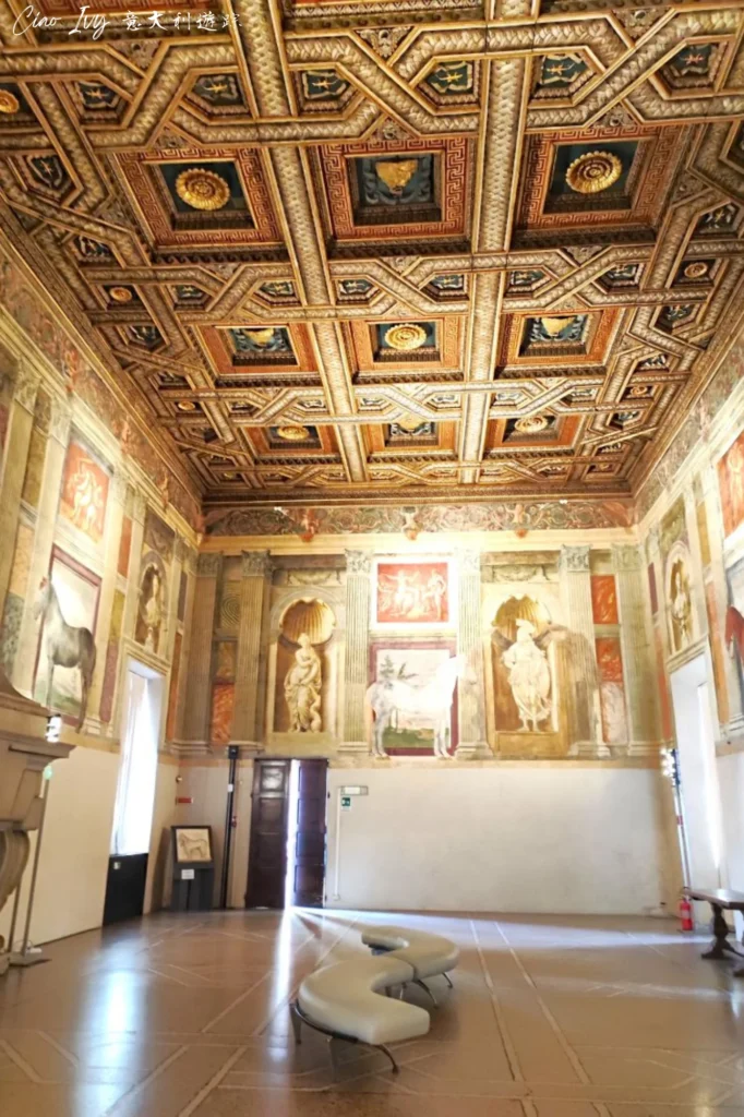 單從外面來看似平平無奇,但真正的亮點其實在宮殿裏面 。朱利奧·羅馬諾Giulio Romano 將拉斐爾和米開朗基羅的藝術風格融入其中,曾參與宮殿內部裝飾的畫家更是多不勝數。個人比較喜歡馬廳 Sala dei Cavalli ,四邊牆壁繪有貢扎加家族六匹愛駒的畫像,與真馬大小相同。