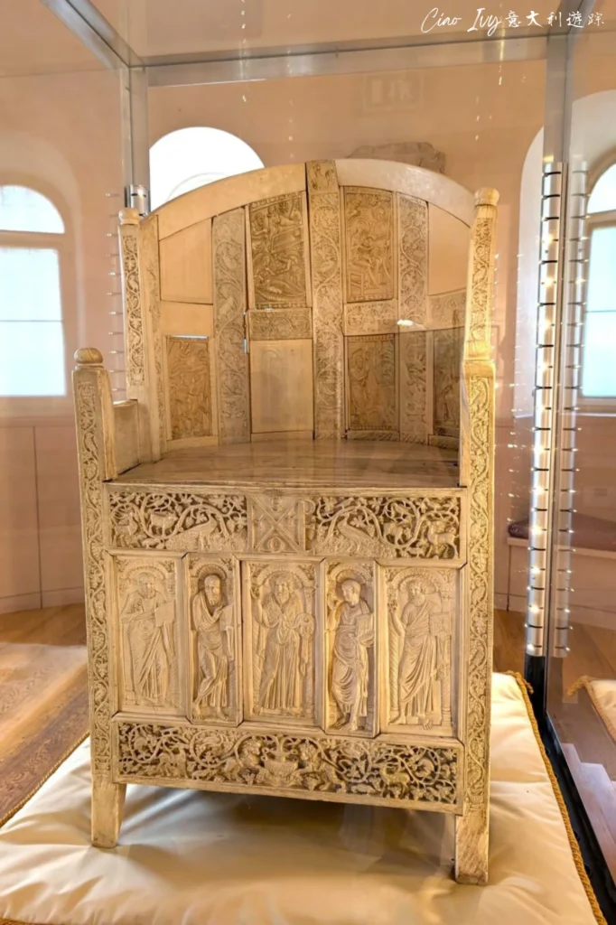 馬克西米安象牙椅椅子原本由木製成,但椅身表面鑲嵌象牙,價值連城。這座主教寶座是在君士坦丁堡為馬克西米安大主教制造,揉合安納托利亞、亞歷山大、埃及和敘利亞多國的藝術風格。