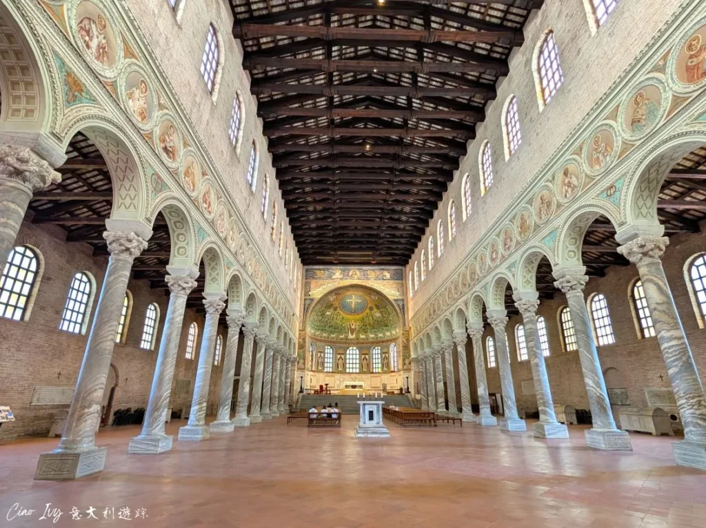 如果你對馬賽克鑲嵌畫意猶未盡,可考慮參觀位於拉文納以南約8公里的小鎮克拉塞Classe城外的聖阿波利納里斯大教堂。
